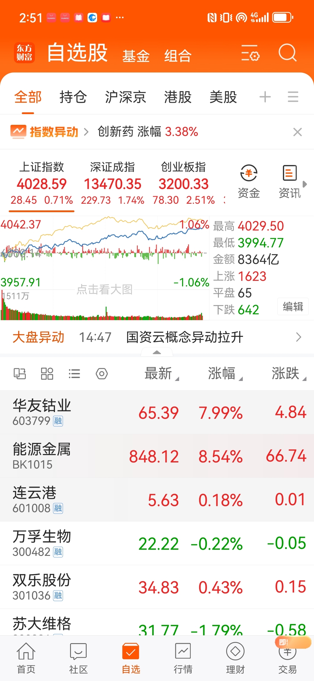 $华友钴业(SH603799)$ 还有天理吗?跌是板块的几倍,涨时板块都带不了你!唉!无语