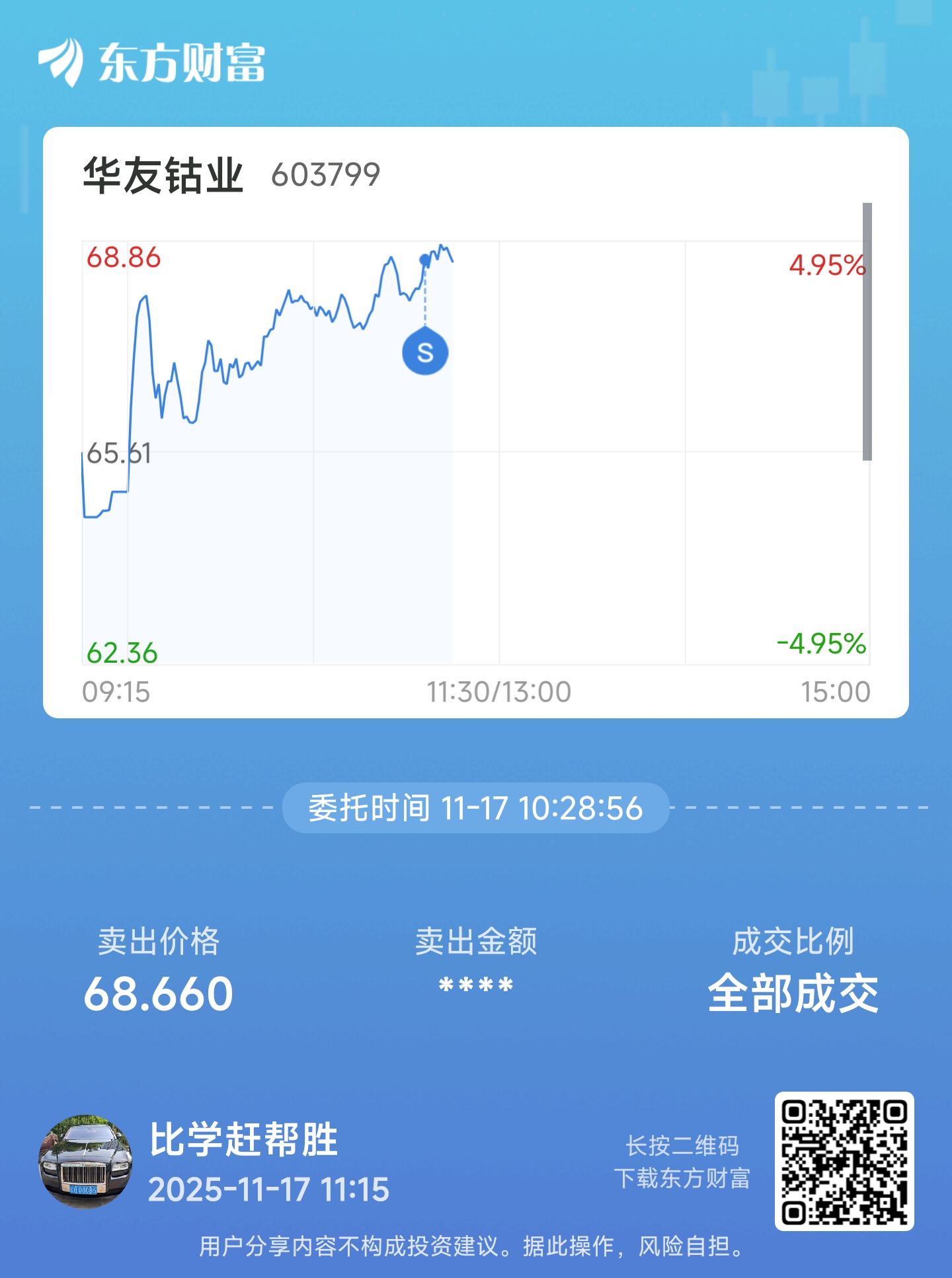 温馨提示: 1.根据《证券法》规定,禁止编造、传播虚假信息或者误导性信息,扰乱证券市场;2.用户在本社区发表的所有资料、言论等仅代表个人观点,与本网站立场无关,不对您构成任何投资建议。用户应基于自己的独立判断,自行决定证券投资并承担相应风险。《东方财富社区管理规定》