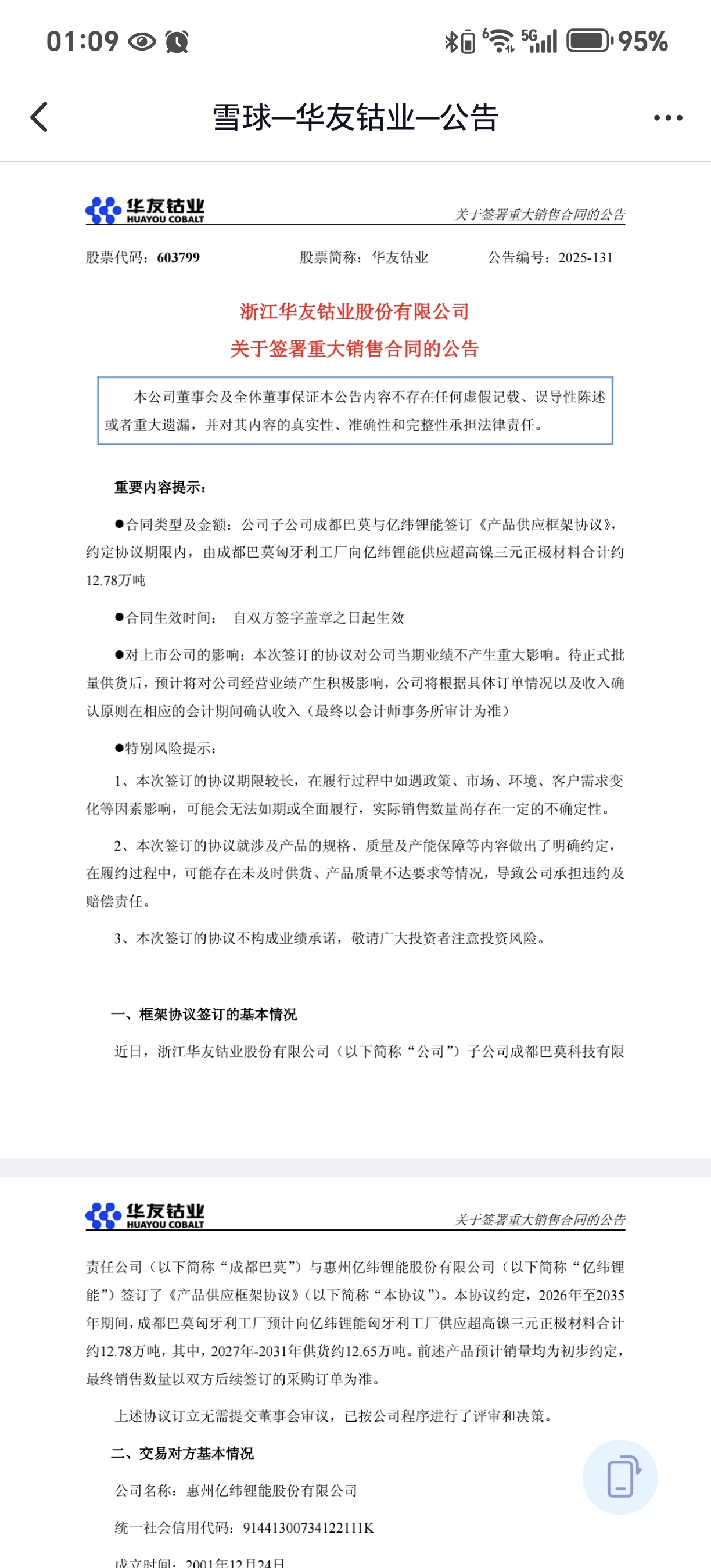 华友钴业签大合同,产销两旺,走过路过,财运不要错过抄送