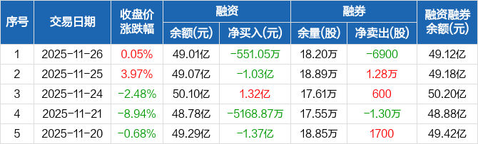 华友钴业:融资净偿还551.05万元,融资余额49.01亿元(11-26)