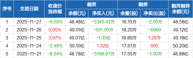 华友钴业:连续3日融资净偿还累计1.62亿元(11-27)
