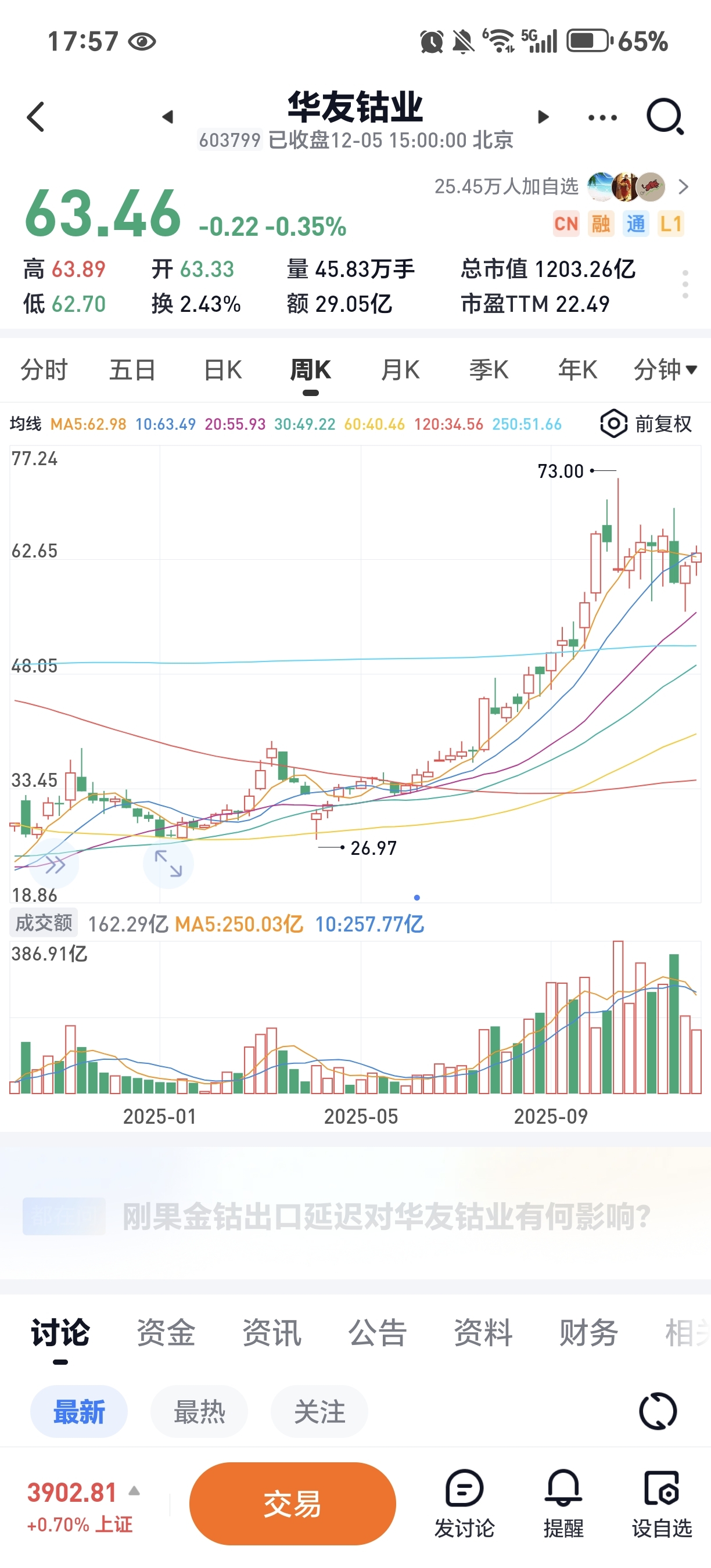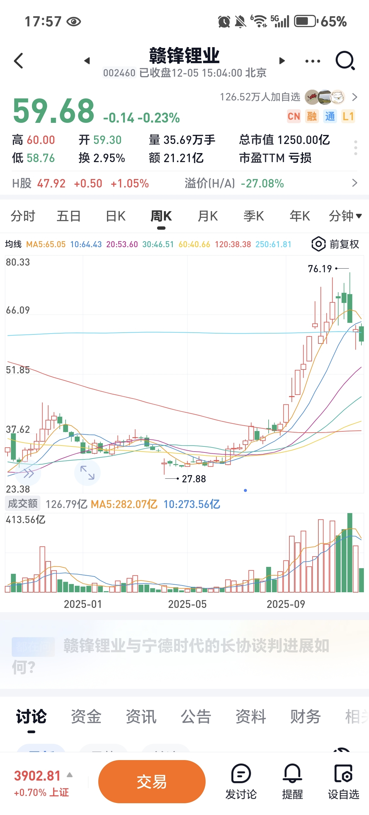 $华友钴业(SH603799)$ 谁说钴业跟两个锂业,看看周线。12月18日之前,洋韭菜必须配置华友钴业作为富时A150,A200指数股,易涨难跌。$赣锋锂业(SZ002460)$ $天齐锂业(SZ002466)$