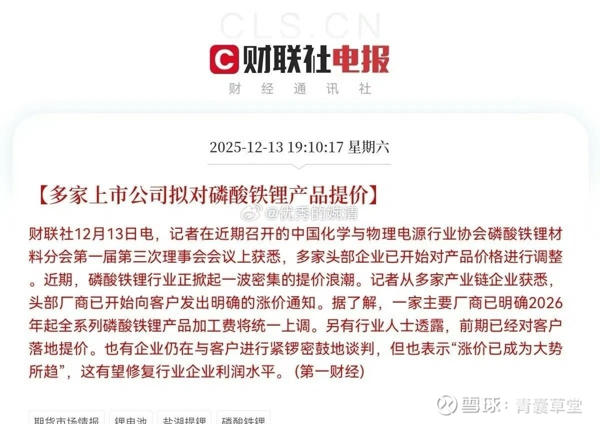 $华友钴业(SH603799)$ 请教各位老法师,如下的新闻,磷酸铁锂提价,对华友钴业是不是利好呢?谢谢
