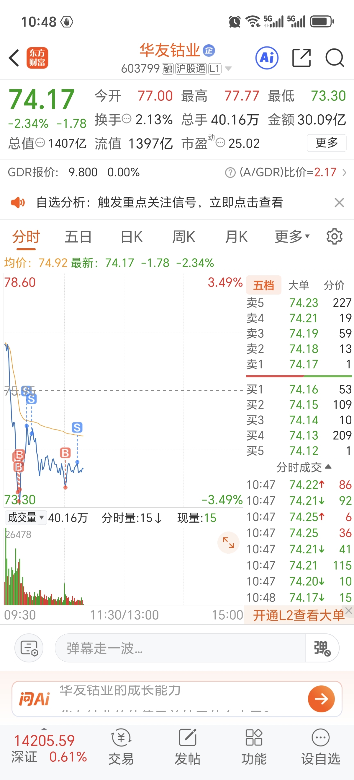 $华友钴业(SH603799)$ 主力烦死我这样的了,底仓不动,每天做T,