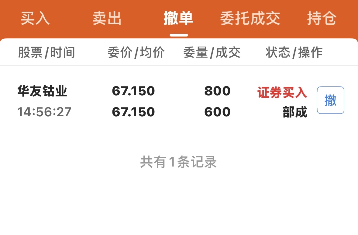 $华友钴业(SH603799)$ 越跌越买!加仓800股,成交了600股!