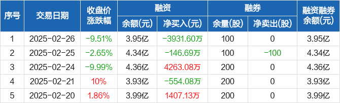洪田股份:融资净偿还3931.6万元,融资余额3.95亿元(02-26)