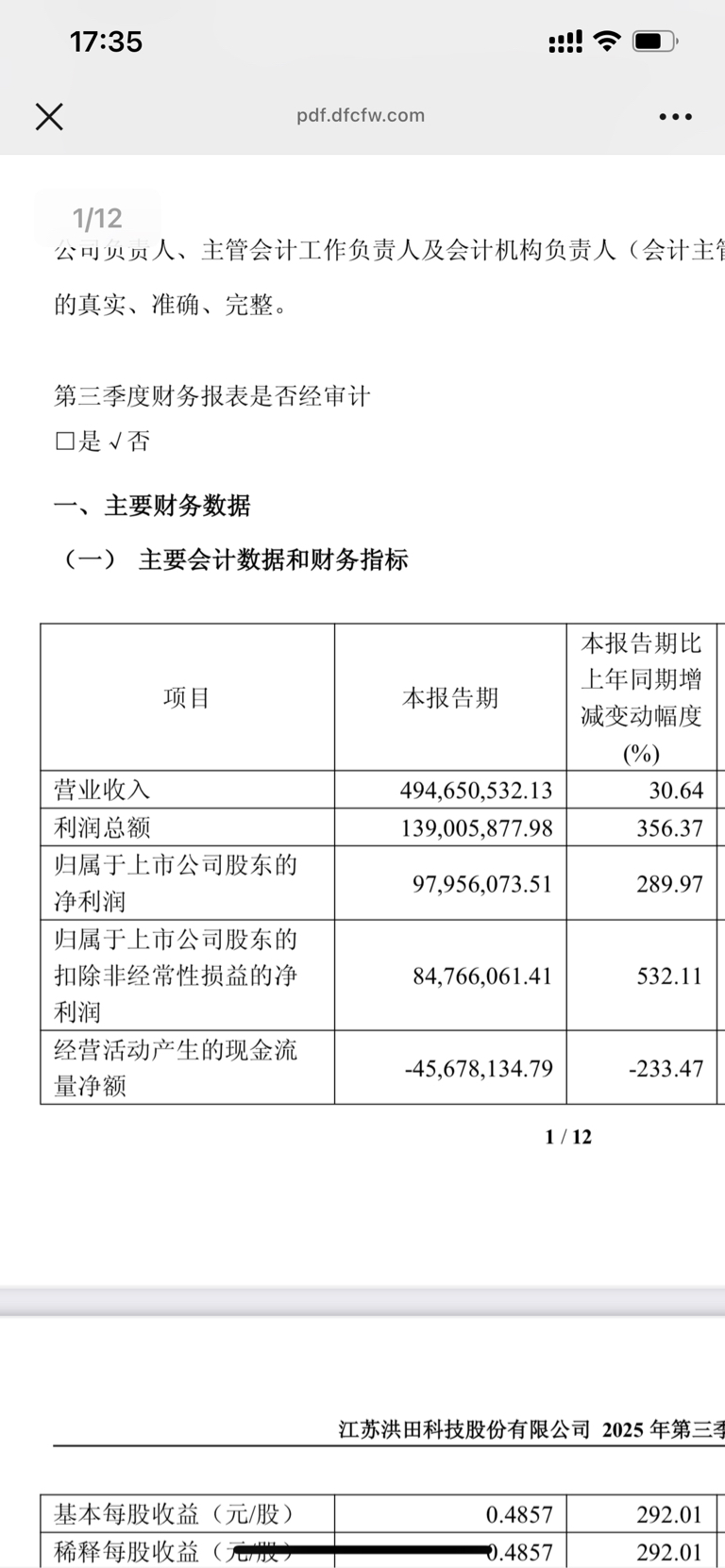 $洪田股份(SH603800)$ 三季报最亮眼的是第三季度增速非常靓丽,同比去年三季度都是数倍增长,前三季度总计下滑是上半年拖累,包括收购标的产生的费用