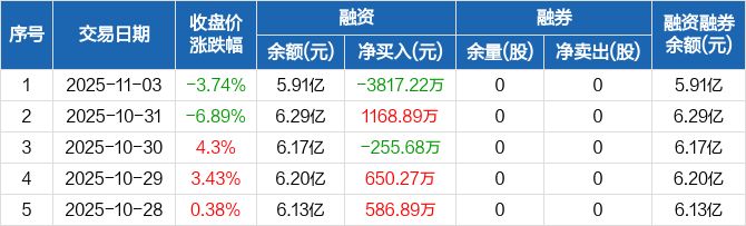 洪田股份:融资净偿还3817.22万元,融资余额5.91亿元(11-03)