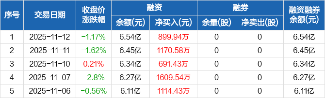 洪田股份:融资余额6.54亿元,创历史新高(11-12)