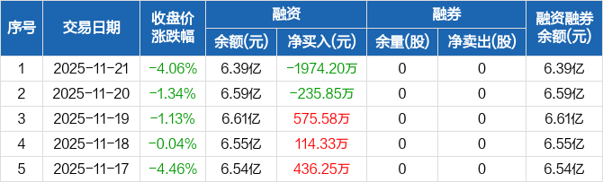 洪田股份:融资净偿还1974.2万元,融资余额6.39亿元(11-21)