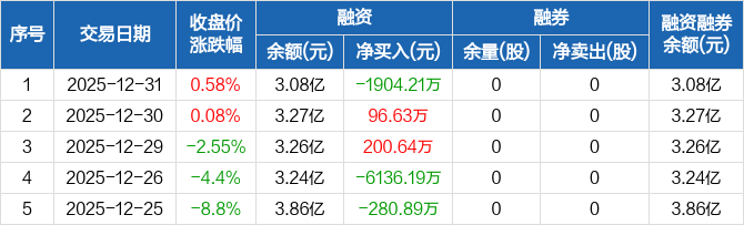 洪田股份:融资净偿还1904.21万元,融资余额3.08亿元(12-31)