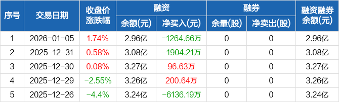 洪田股份:融资净偿还1264.66万元,融资余额2.96亿元(01-05)