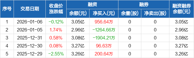 洪田股份:融资净买入956.64万元,融资余额3.05亿元(01-06)