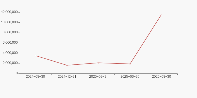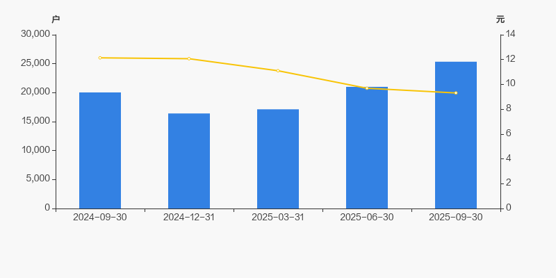 自2024年12月31日以来,公司股东户数连续3期上涨,截至目前增幅为54.45%。2024年12月31日至2025年9月30日区间股价下降22.85%。