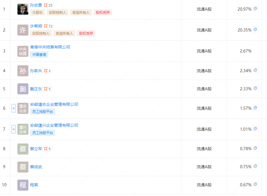 十个股东七个是公司高管,两个安徽管理公司也是员工持股平台,都靠分红过日子,不在乎股价高低,完蛋了,股价起不来。