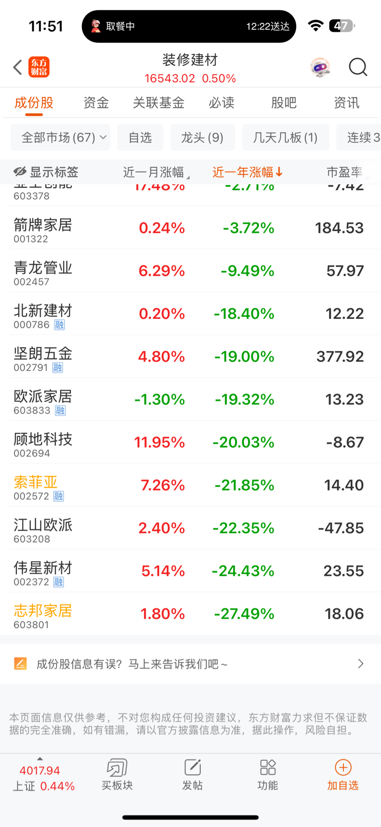 $志邦家居(SH603801)$ 目前在板块里是垫底的,遥遥垫底