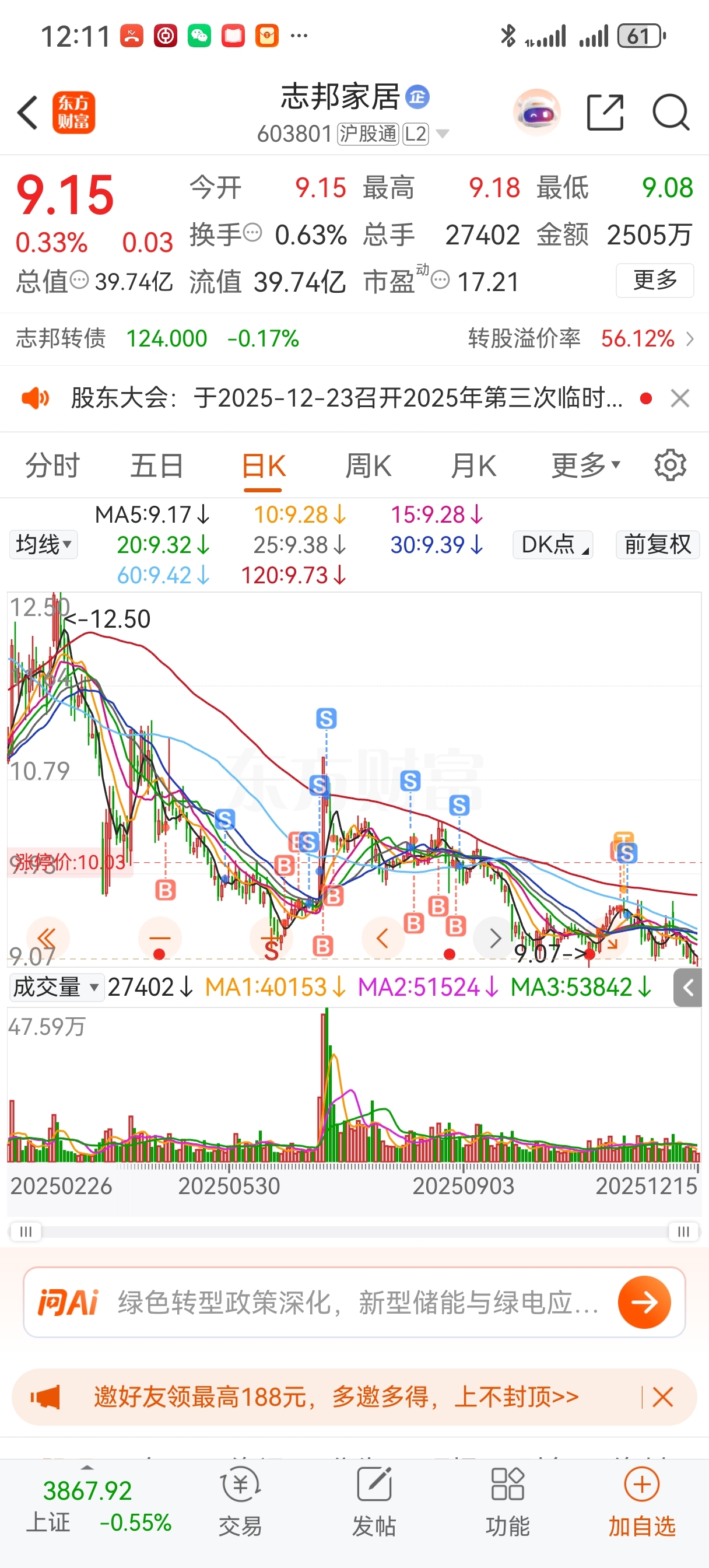 从志邦出来在别的票也赚了将近50个点的利润了不知道志邦想干啥,时不时的还要回头看