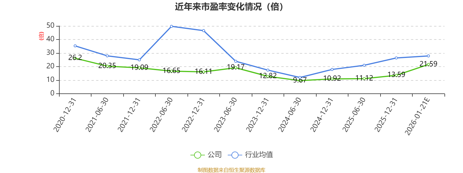 以本次披露业绩预告均值计算,公司近年市盈率(TTM)图如下所示: