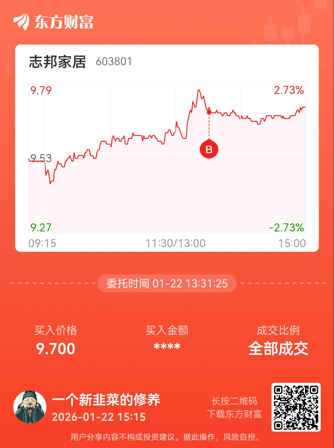 温馨提示: 1.根据《证券法》规定,禁止编造、传播虚假信息或者误导性信息,扰乱证券市场;2.用户在本社区发表的所有资料、言论等仅代表个人观点,与本网站立场无关,不对您构成任何投资建议。用户应基于自己的独立判断,自行决定证券投资并承担相应风险。《东方财富社区管理规定》