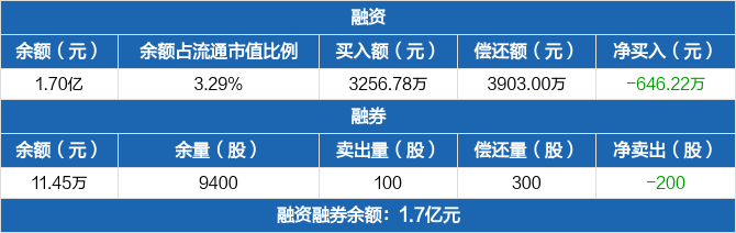 瑞斯康达:融资净偿还646.22万元,融资余额1.7亿元(02-25)