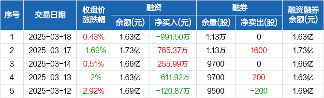瑞斯康达:融资净偿还991.5万元,融资余额1.63亿元(03-18)