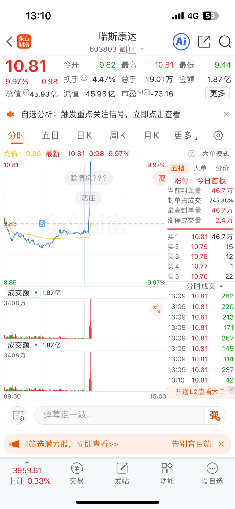 $瑞斯康达(SH603803)$ 学艺不精被洗了