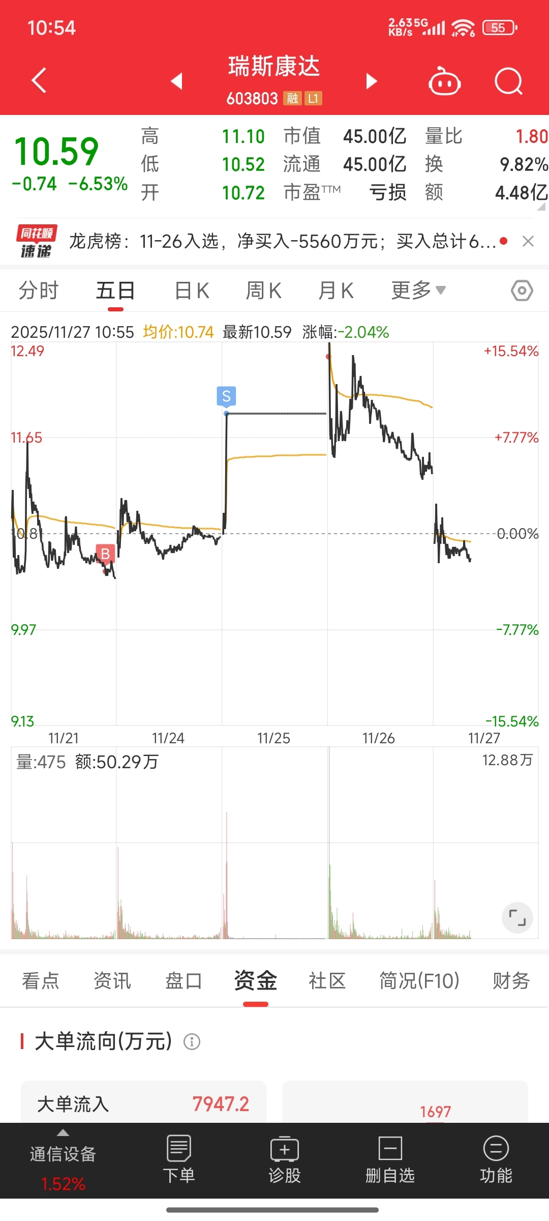 $瑞斯康达(SH603803)$ 耐心等低位,只能这样了