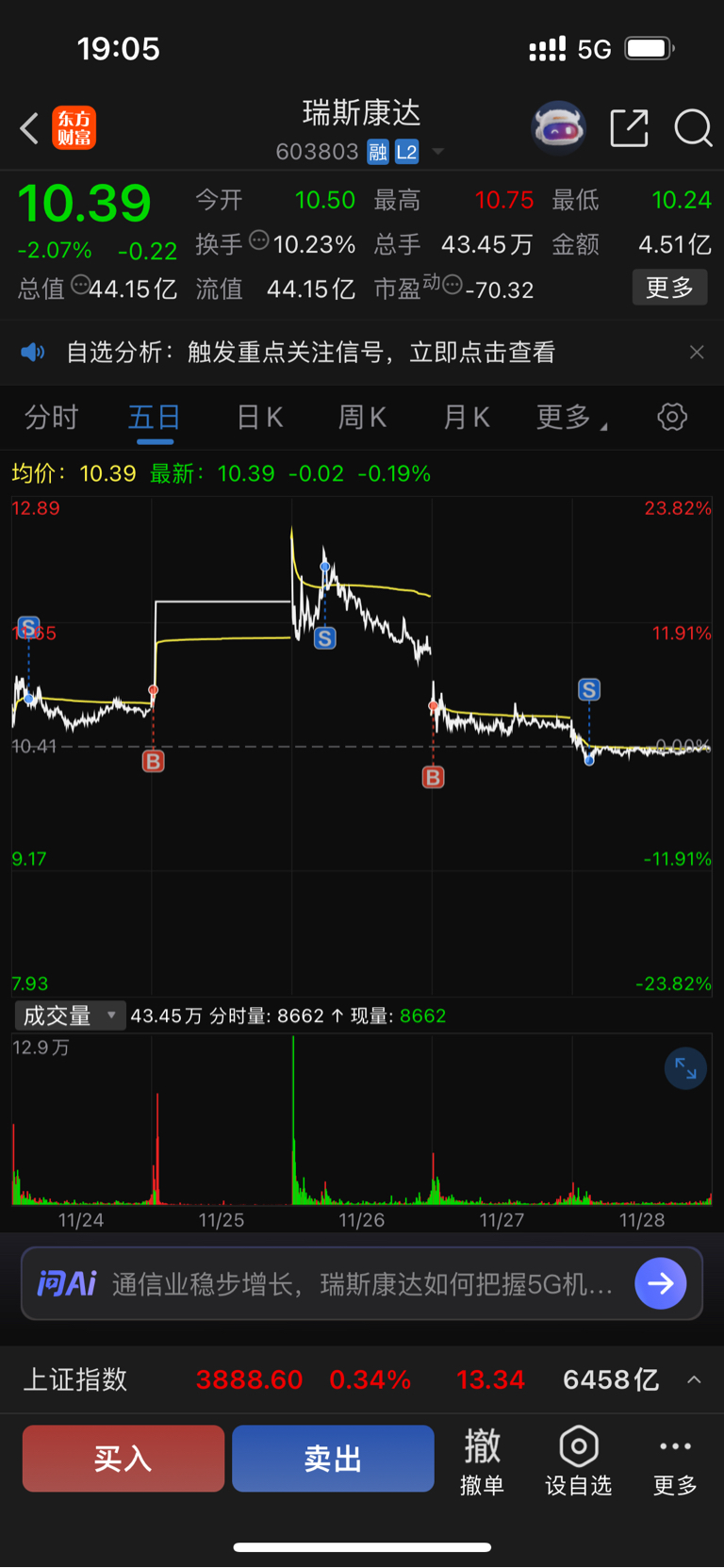 $瑞斯康达(SH603803)$ 破位先走 我还会回来的