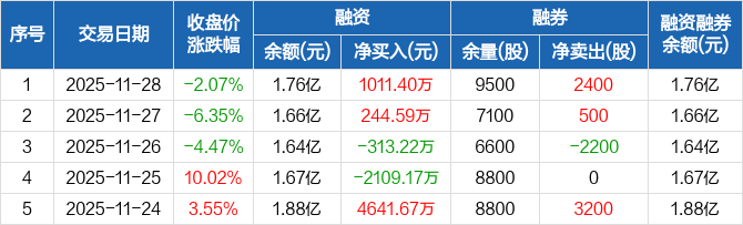 瑞斯康达:融资净买入1011.4万元,融资余额1.76亿元(11-28)