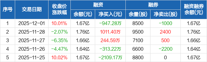 瑞斯康达:融资净偿还947.28万元,融资余额1.67亿元(12-01)