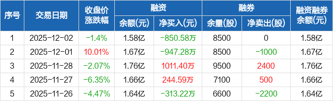瑞斯康达:融资净偿还850.58万元,融资余额1.58亿元(12-02)