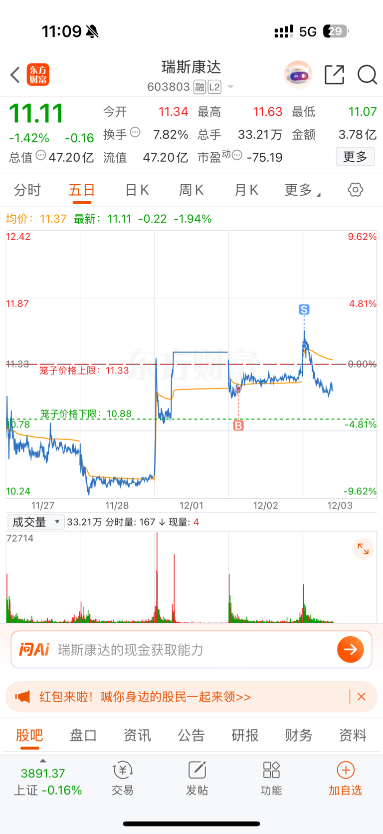 $瑞斯康达(SH603803)$ 明后天再来盘你。