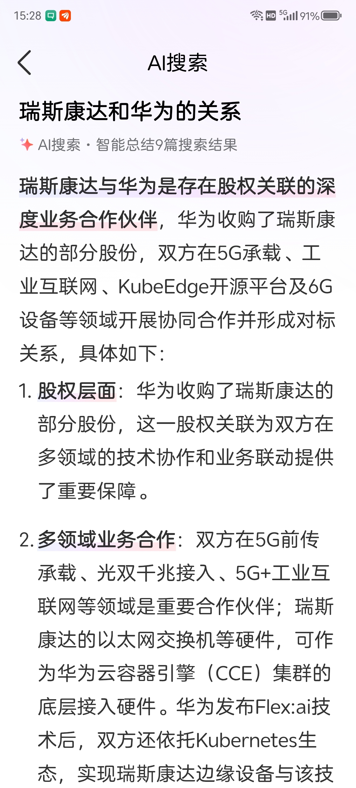 $瑞斯康达(SH603803)$ 华为有瑞斯康达的部分股权,双方存在深度合作。
