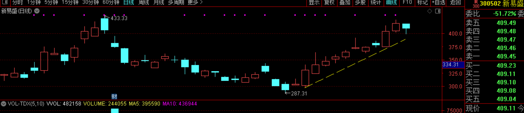 CPO的股票支撑线还有下降空间,中际旭创,新易盛,瑞斯康达,斜率角度最大的是新易