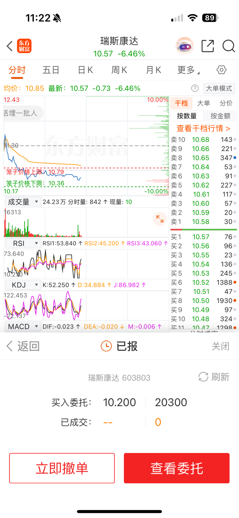 $瑞斯康达(SH603803)$ 我在这里等大家兜底。