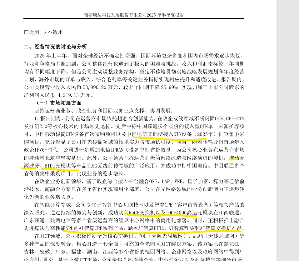 在光模块暴涨的情况下,中际旭创腾飞,新易盛接近10%涨幅,剑桥科技大涨6%,这个逆子瑞斯康达大跌5%,果然有问题,