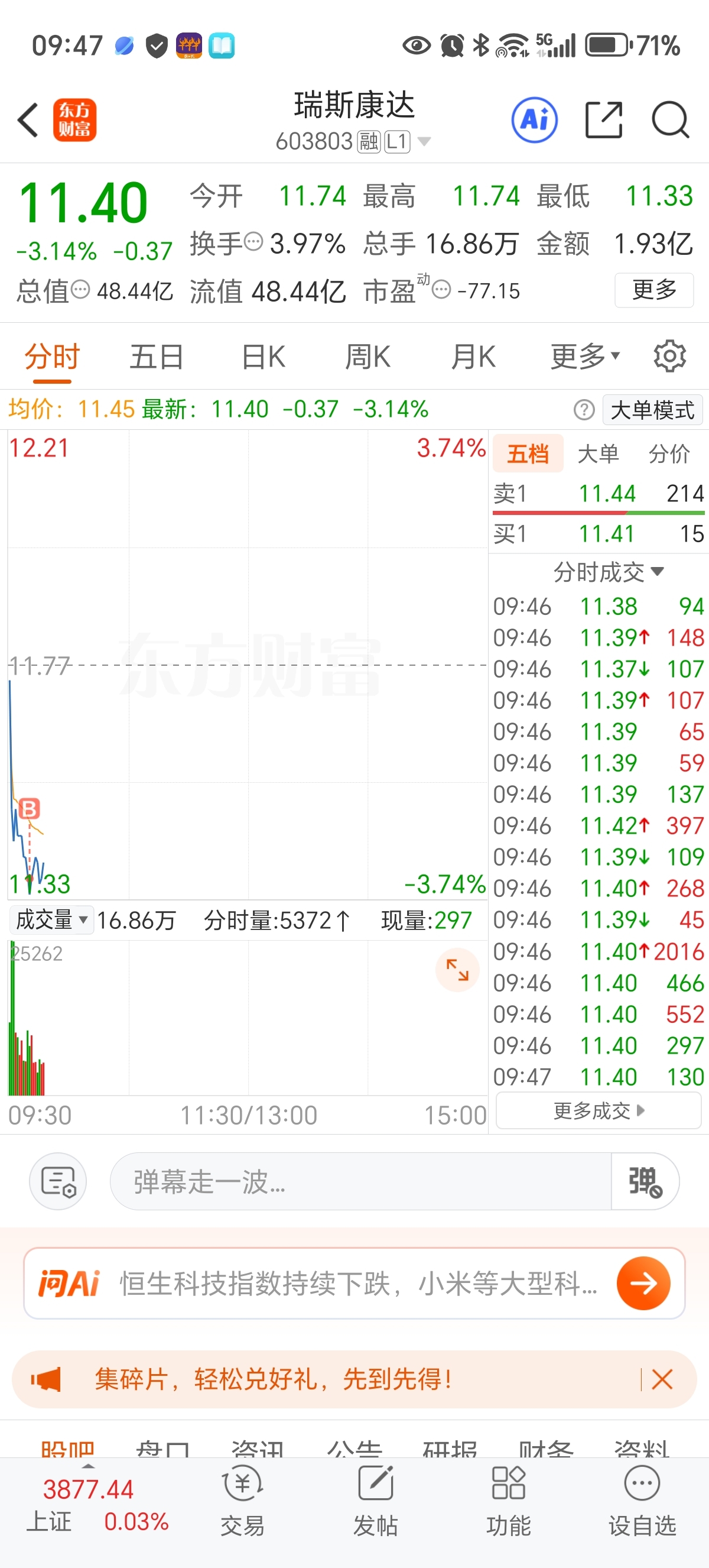 $瑞斯康达(SH603803)$ 大跌多拿点,坐等主升浪!