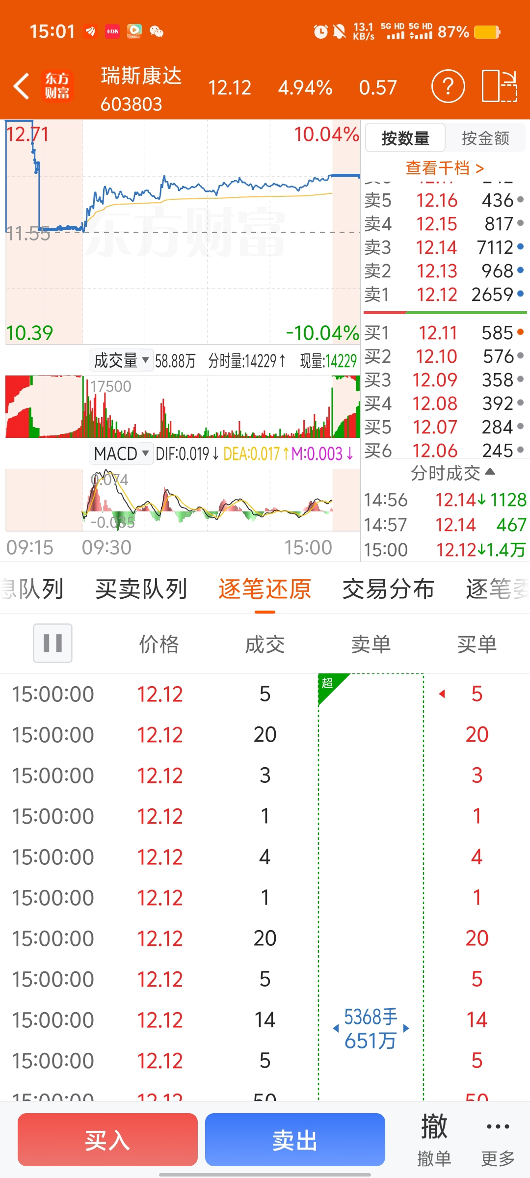 $瑞斯康达(SH603803)$ 盘中干嘛不砸