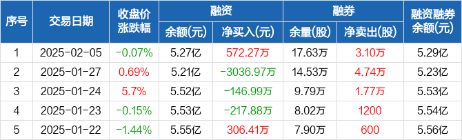 福斯特:融资净买入572.27万元,融资余额5.27亿元(02-05)