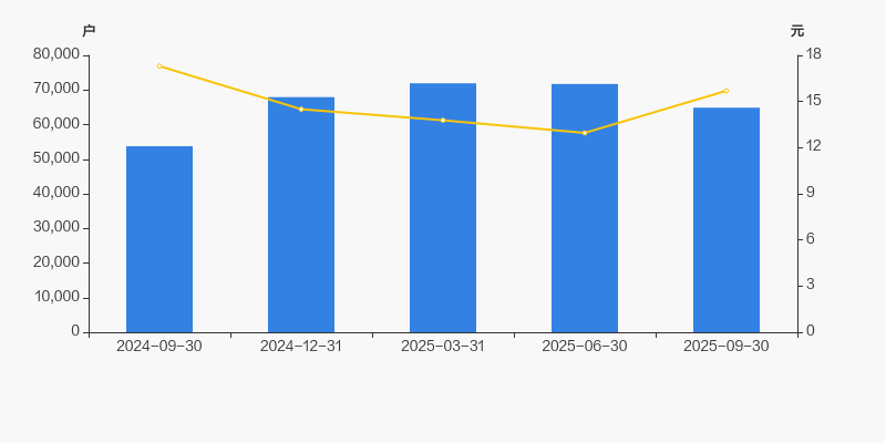 2024年9月30日至今,公司股东户数显著增长,区间涨幅为20.71%。2024年9月30日至2025年9月30日区间股价下降9.24%。