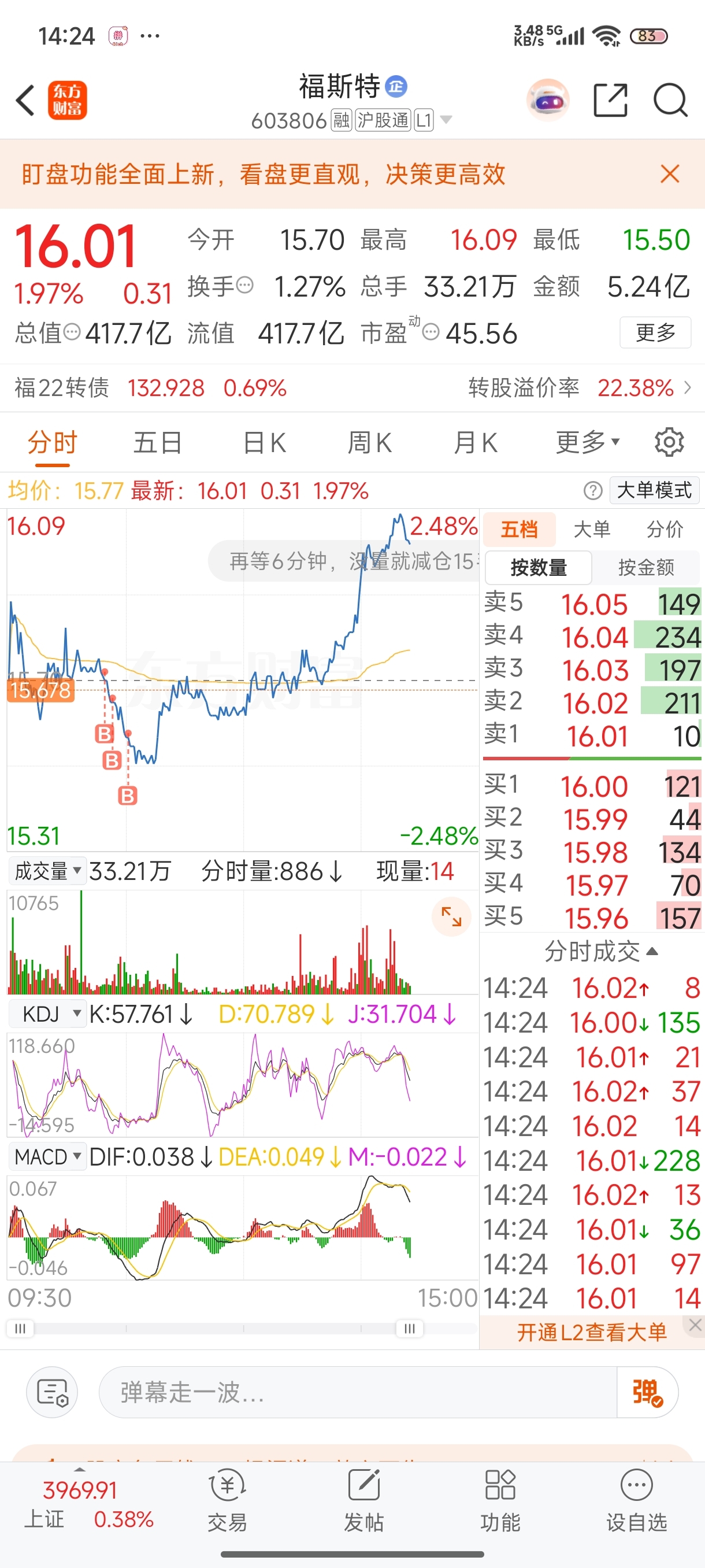$福斯特(SH603806)$ 出不来,t+0我就卖点