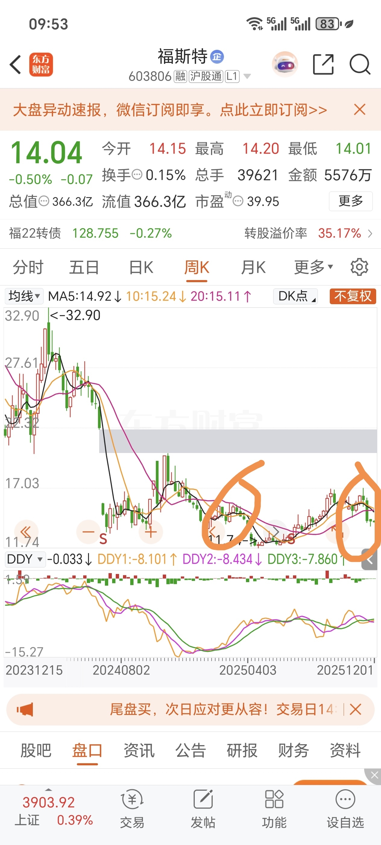 $福斯特(SH603806)$ 周线非常明显的双头顶,而且走势,没有任何反弹的迹象,不知道过年前,能不能跌到11多?