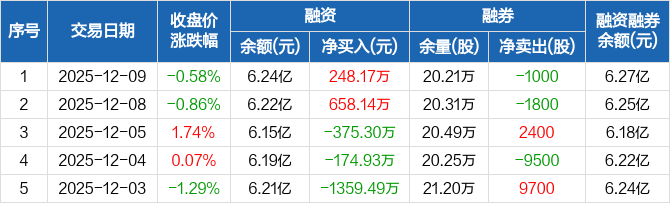 福斯特:融资净买入248.17万元,融资余额6.24亿元(12-09)