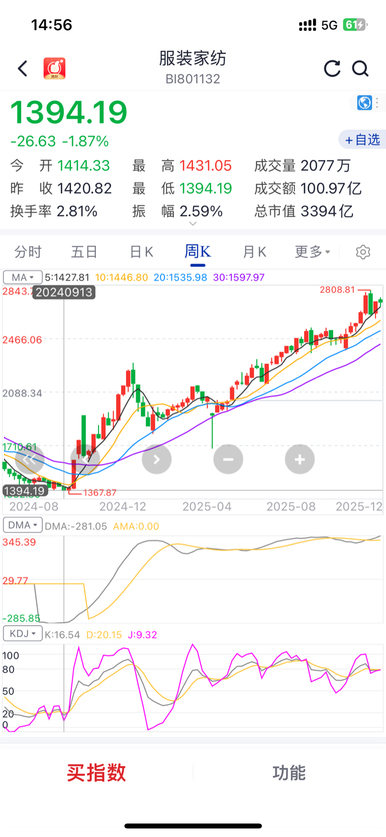 服装板块指数都翻一倍多了,你就是不起来,跌了10年了,我被套了5年多了,14块左