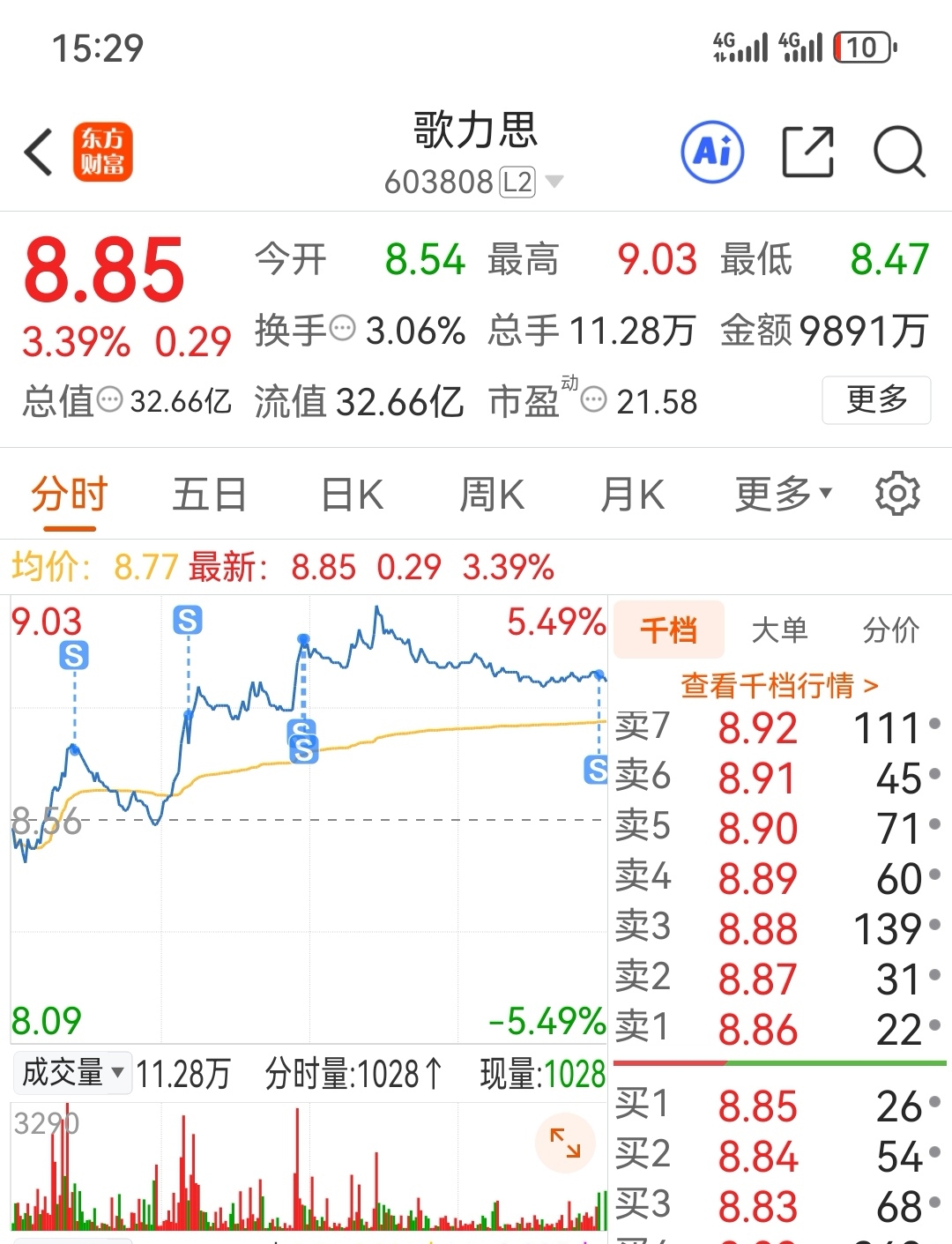感谢歌力思,清仓走人了,放量有上影线,有回调可能,回调再来!