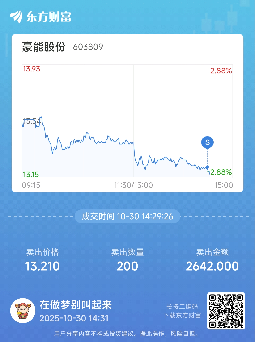 温馨提示: 1.根据《证券法》规定,禁止编造、传播虚假信息或者误导性信息,扰乱证券市场;2.用户在本社区发表的所有资料、言论等仅代表个人观点,与本网站立场无关,不对您构成任何投资建议。用户应基于自己的独立判断,自行决定证券投资并承担相应风险。《东方财富社区管理规定》