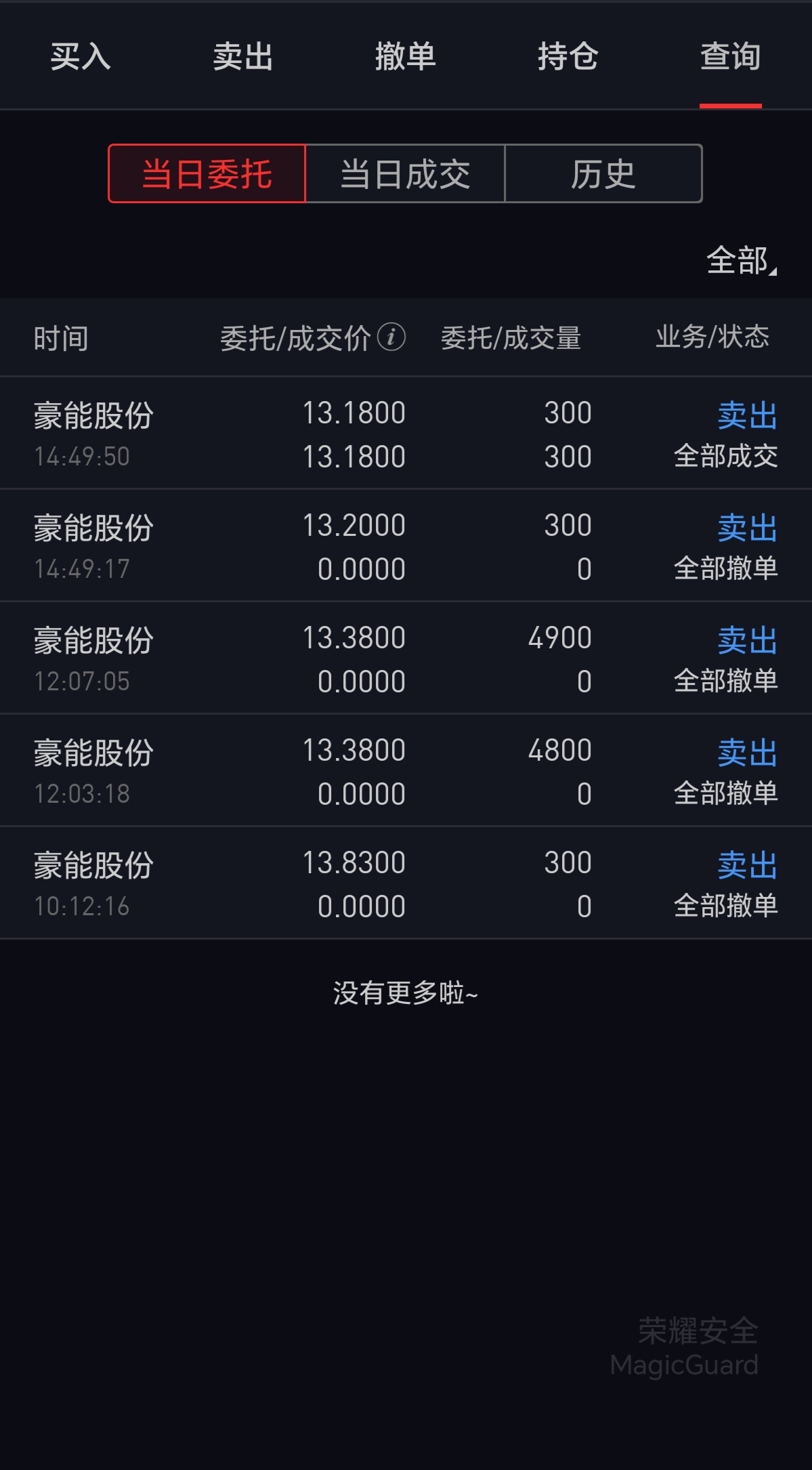 $豪能股份(SH603809)$ 你们看嘛,中午本来想跑的,结果没跑,犹豫不决的结果