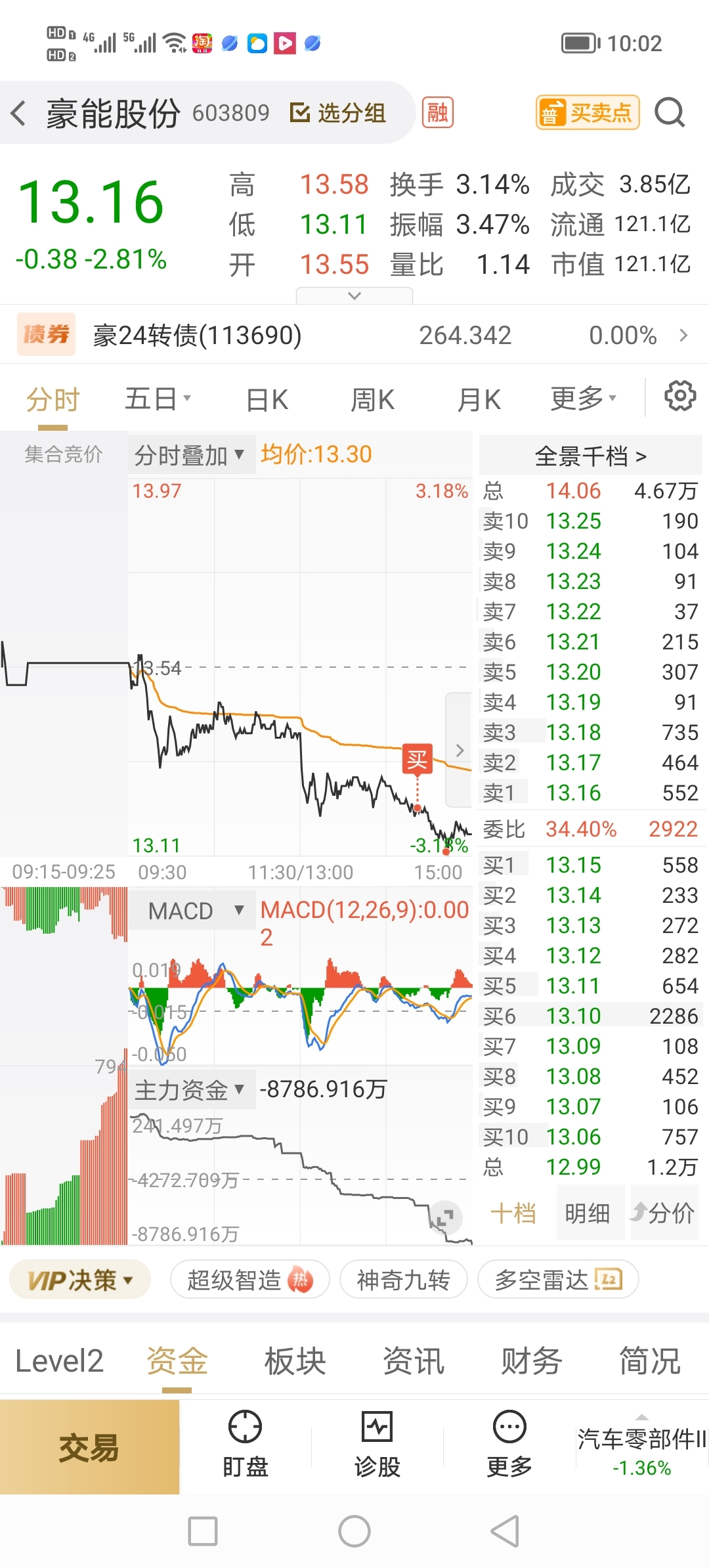 $豪能股份(SH603809)$ 业绩报告出来了,公司还是可以的,4-5元涨到18,表面看涨幅大,但4-5元是去年大盘打压下去,真正低点区间应该在8-9元之间,现在汽配板块位置的高度,豪能13+也差不多,说高不高,说低不低,再说豪能在17--18元根本没停留多少天,跌下来稍快一点,今天下午我加仓了,暂时浮亏几个点,打算拿久点观察一下