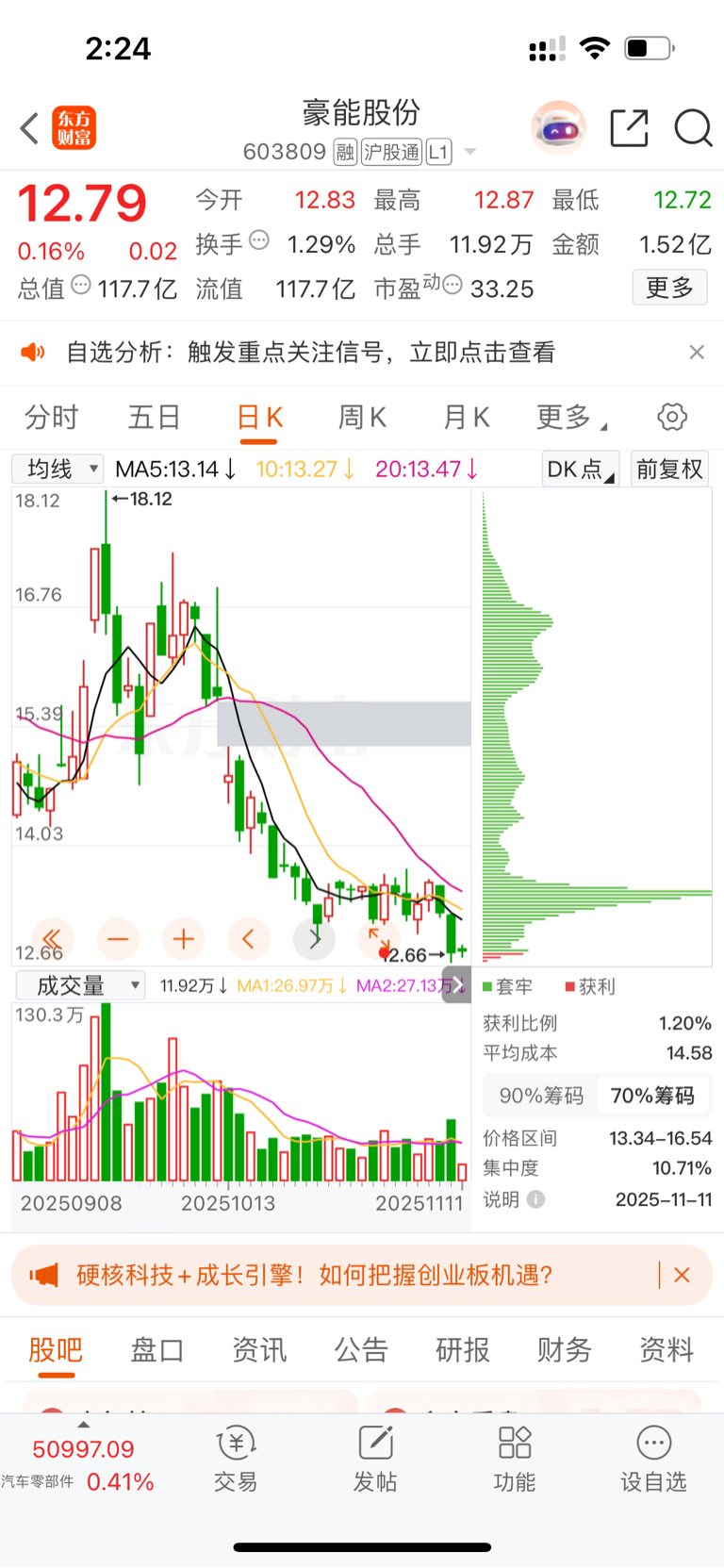 $豪能股份(SH603809)$ 今天严重缩量,不乐观