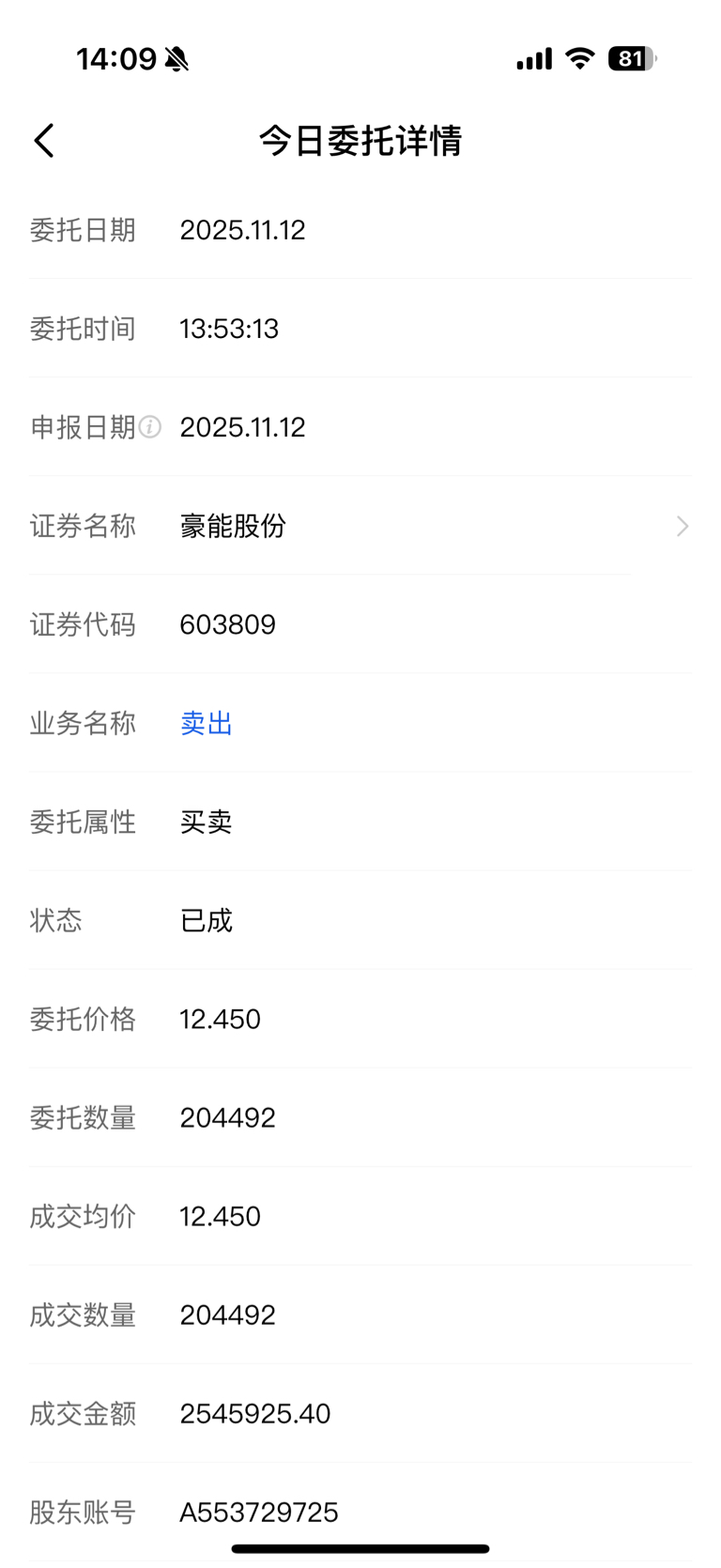 $豪能股份(SH603809)$ 绝对12以下了,早走早解脱,以后再来